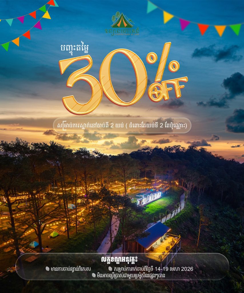Celebrate under the stars this Khmer New Year at Camping Park by EHM with 30% off your outdoor adventure. Great for family and friends, enjoy lively nights, cozy tents, and unforgettable memories together.